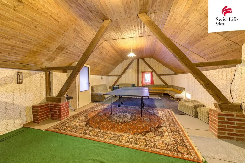Na rozlehlém rovinatém pozemku je k dispozici zahradní domek s elektřinou a dále udírna, kterou budete rádi využívat při rodinných oslavách nebo při letních večerech s přáteli. Na pozemku je funkční studna, která je napojena na rodinný dům. Na zahradě, která je ve velmi udržovaném stavu jsou plodící ovocné stromy a keře. V zadní částí domu se nachází velká garáž s příjezdovou cestou pro dva osobní automobily.