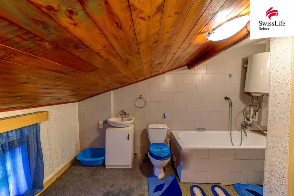 V přízemí rodinného domu je 6 místností, dvě samostatné kuchyně, dvě koupelny, dvě toalety a garáž. Po schodech vystoupáte do patra rodinného domu, kde se nachází obývací pokoj a dalších 5 pokojů. Koupelna a toaleta se nachází v mezipatře domu. Rodinný dům má celkem čtyři vchody.