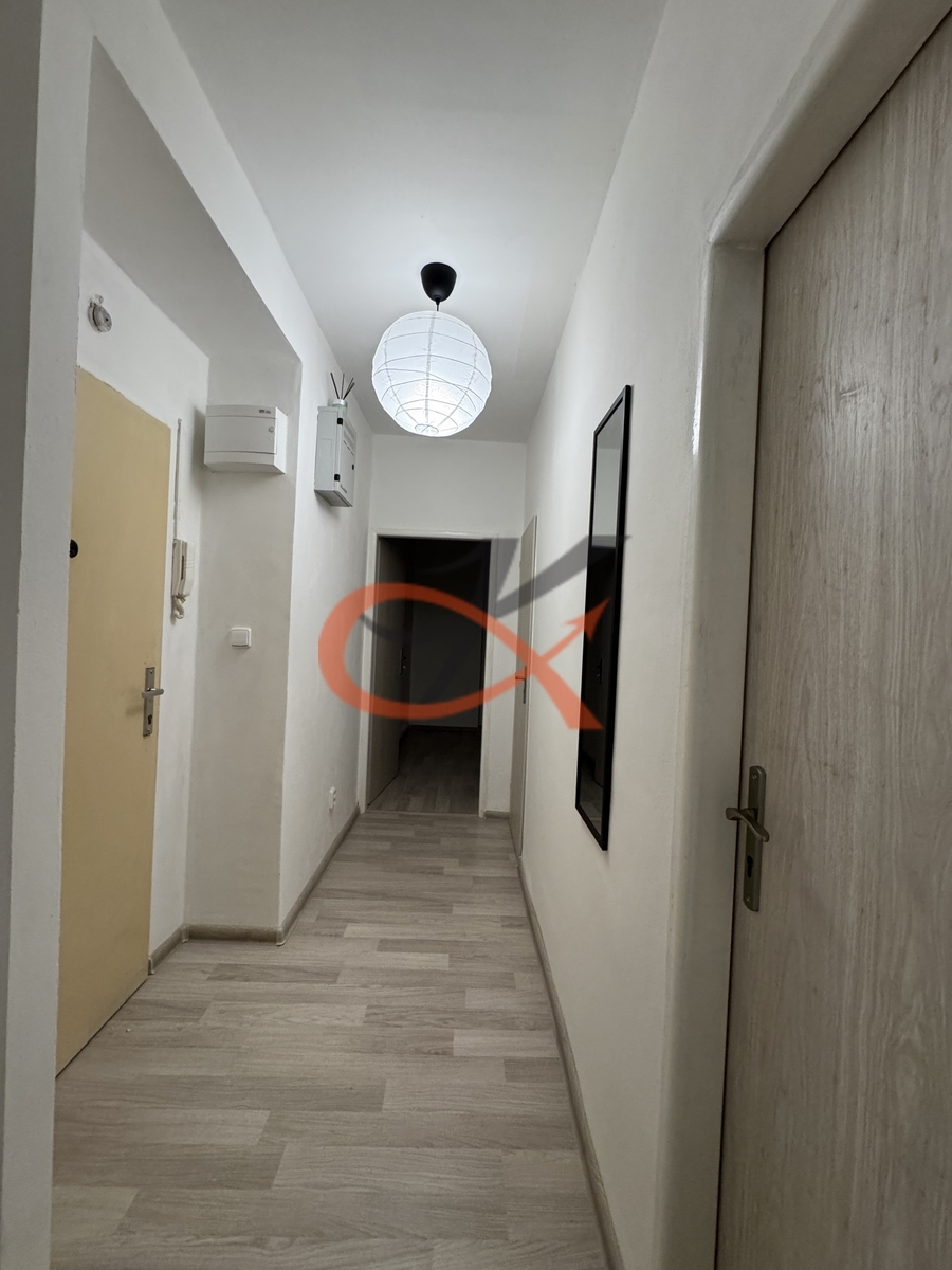 Byt prošel kompletní rekonstrukcí a je vybaven novou kuchyňskou linkou s vestavnými spotřebiči. Dispozice nabízí dva samostatné neprůchozí pokoje, které jsou nezařízené. Srdcem bytu je obývací pokoj propojený s kuchyní, kde se nachází kuchyňský stůl se židlemi, sedací souprava a komoda.