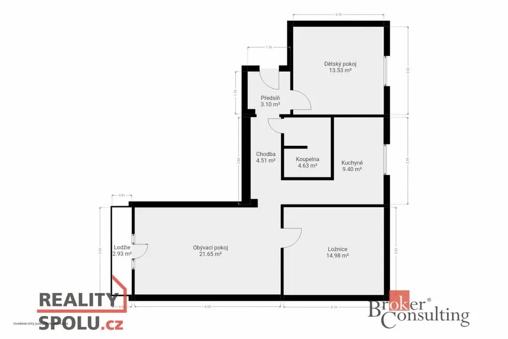 Samotný byt o užitné ploše 72 m² se skládá z předsíně, dětského pokoje, společné koupelny s toaletou a sprchovým koutem, kuchyně s novou kuchyňskou linkou včetně spotřebičů, ložnice a prostorného obývacího pokoje s přímým vstupem na vlastní lodžii o ploše 3 m².