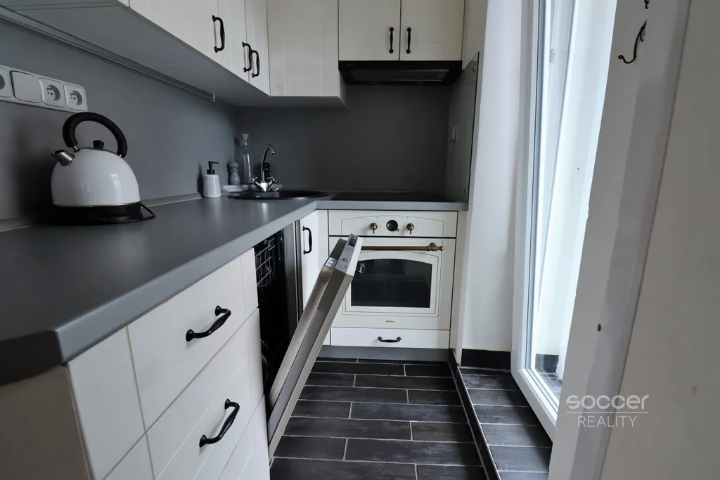 Součástí bytu je krásná kuchyňská linka s myčkou na nádobí, lednicí a troubou. Dále je zde rozkládací sedačka, jídelní stůl se židlemi, komody. Světlá koupelna je vybavena sprchovým koutem a pračkou.