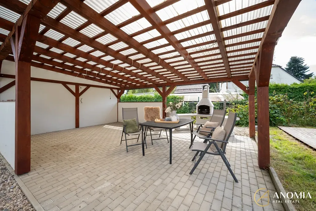 V dolním podlaží je instalováno podlahové vytápění a krb na tuhá paliva, v horním podlaží jsou pak umístěny radiátory. Součástí domu je také fotovoltaická elektrárna, kterou lze pohodlně ovládat a sledovat prostřednictvím mobilní aplikace. Na zahradě se nachází studna a příjemné letní večery můžete trávit na prostorné terase se zastřešenou dřevěnou pergolou. Stavba leží na dobře situovaném, krajním pozemku o celkové výměře 823 m².