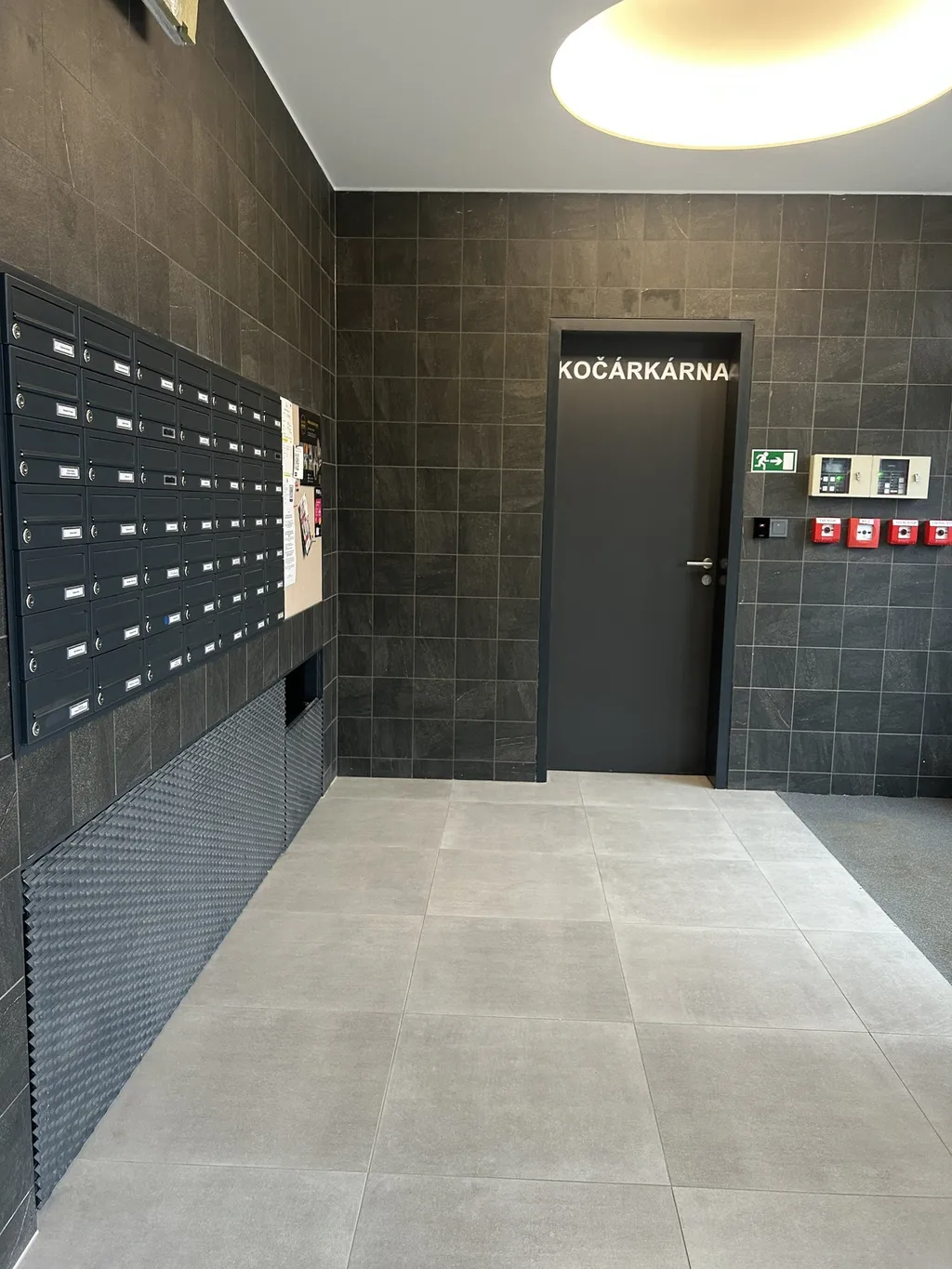 Byt nabízí dostatek úložných prostor díky praktické komoře umístěné v bytě a sklepu. Koupelna je vybaven vanou, umyvadlem, topným žebříkem a přípravu na pračku i sušičku. Samostatná toaleta. Všechna okna jsou vybavena elektrickými žaluziemi.