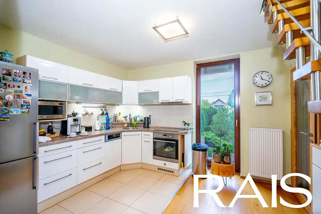 V přízemí se nachází prostorný obývací pokoj s kuchyní, spíž, technická místnost, vstupní chodba a toaleta. V patře jsou dva pokoje, šatna, koupelna, samostatné WC, balkon a chodba. K nemovitosti náleží rozlehlá a udržovaná zahrada, která nabízí dostatek prostoru pro relaxaci, odpočinek nebo pěstování zeleniny. V zadní části pozemku se nachází zahradní domek, před domem pak parkovací stání pro dva automobily, z nichž jedno je kryté pergolou. Součástí domu je rovněž nevyužitý půdní prostor.