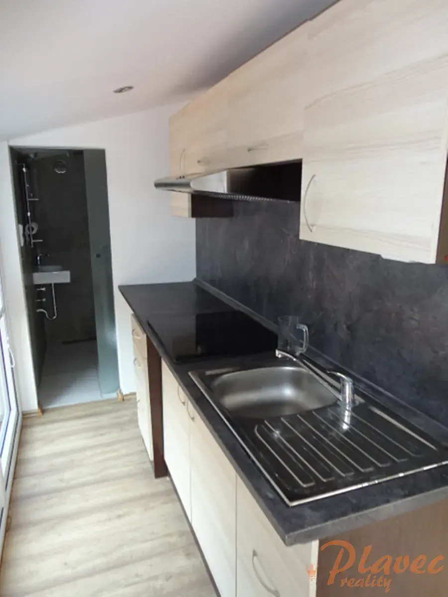Dispozice: vstupní chodba, pokoj, kuchyně, koupelna se sprchovým koutem, toaleta.