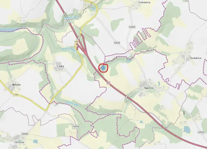 Pozemek je příjezdný od osady Speřice po částečně zpevněné cestě podél dálnice D1.
