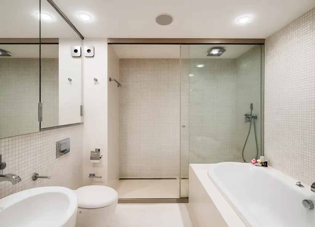 Spodní úroveň bytu tvoří prostorný obývací pokoj propojený s kuchyní a jídelní částí. Díky rohové poloze a dvěma plně proskleným stěnám je interiér zaplaven denním světlem a nabízí přímý vstup na velkorysou terasu orientovanou do zeleně přírodního parku Smetanka. Otevřená galerie dodává prostoru lehce loftový charakter. Dále se zde nachází dva samostatné pokoje s vlastní koupelnou, aktuálně využívané jako ložnice a pracovna, přičemž oba mají přímý vstup na druhou terasu orientovanou na východ. Spodní patro doplňuje samostatná toaleta pro hosty v zádveří a prakticky řešené úložné prostory v hale.