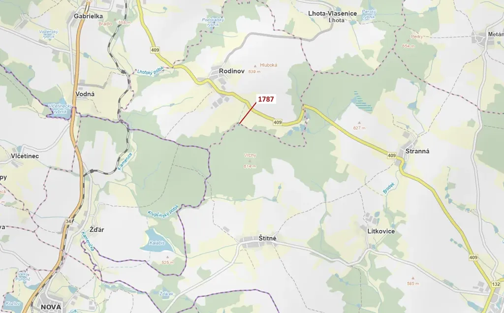Lesní pozemek o výměře 288 m2, parcelní číslo 1787, podíl 1/1, katastrální území Štítné, obec Žirovnice, obec s rozšířenou působností Pelhřimov, okres Pelhřimov, Kraj Vysočina.