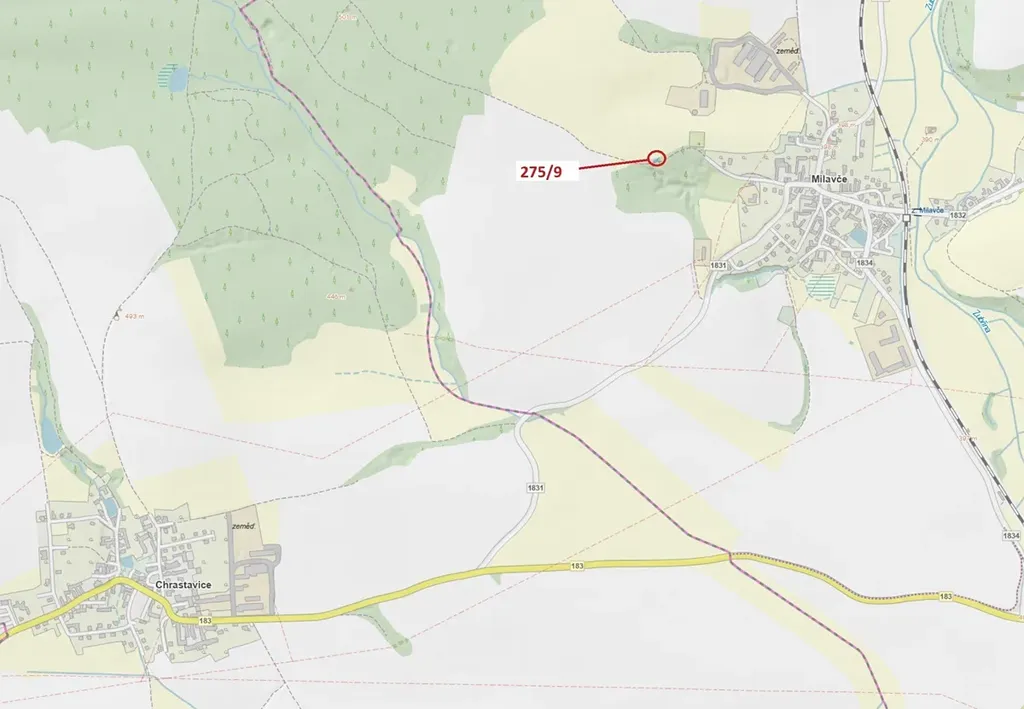 Orná půda o výměře 72 m2, parcelní číslo 275/9, podíl 1/1, katastrální území Milavče, obec Milavče, obec s rozšířenou působností Domažlice, okres Domažlice, Plzeňský kraj.