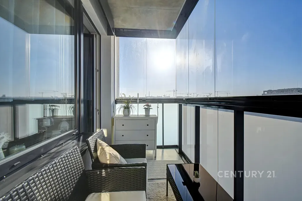 Zasklený balkon jako ideální prostor pro relax, práci nebo snídani v soukromí.