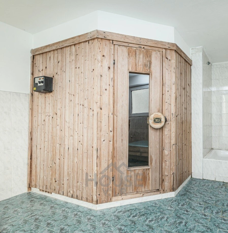 Vedle domu je přístavek, kde se nachází bazén a sauna, dále přístavek kde jsou dvě garáže a dílna, vše celkem o výměře 120 m2.