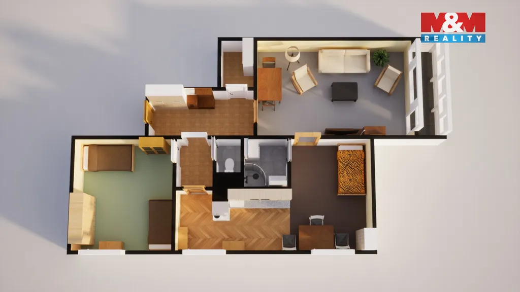 Dispozice bytu nabízí prostornou předsíň s praktickou komorou, samostatnou ložnici, obývací pokoj se zasklenou lodžií a kuchyni. Díky umístění ve vyšším patře má byt pěkný výhled do okolí a dostatek světla. Dům je situován v klidné části města s dobrou dostupností občanské vybavenosti, autobusového i vlakového nádraží a zároveň v blízkosti přírody Jizerských hor.