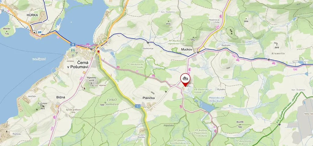 Ve výhradním zastoupení si vám dovolujeme nabídnout zcela jedinečný soubor pozemků v osadě Jámy, která se nachází v šumavské přírodě mezi Muckovem a Pláničkou, pouhých 3,7 km od Černé v Pošumaví a vodní nádrže Lipno. Tato lokalita nabízí mimořádně klidné prostředí, krásné výhledy do krajiny, rybníky, lesy, cyklostezky i turistické trasy, a přitom zůstává velmi dobře dostupná.