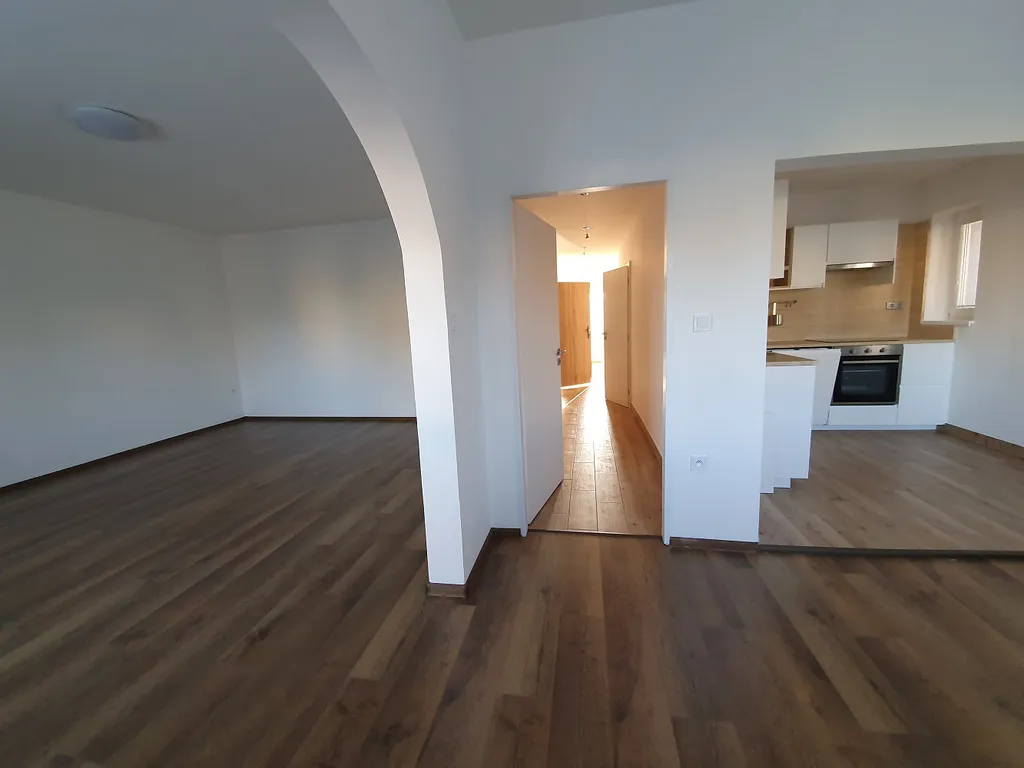 Nabízíme přímo od majitele k dlouhodobému pronájmu krásný byt 3+1 o velikosti 90m² v 1. patře rodinného domu o třech bytových jednotkách v obci Darkovičky u Hlučína. Byt má samostatný vchod ze společného schodiště. Pokoje jsou neprůchozí. V oknech jsou žaluzie a síta proti hmyzu. Dva pokoje (o velikosti 17,6 m² a 14,8 m²) jsou situovány do zahrady. V druhé části bytu je velký obývací pokoj (25,5 m²) s balkónem, a kuchyň s prostorem pro velký jídelní stůl. Součástí kuchyňské linky jsou vestavěné spotřebiče jako myčka nádobí, mikrovlnná trouba a elektrická trouba s varnou sklokeramickou deskou. Koupelna (6,5 m²) je vybavena sprchovým koutem i vanou.