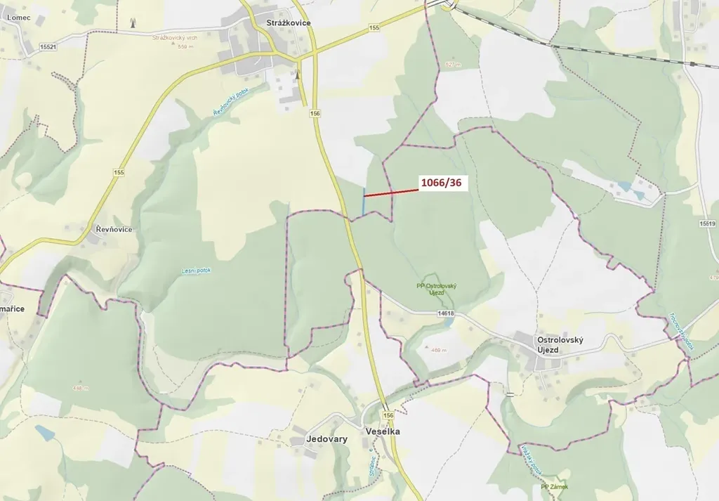 Lesní pozemek o výměře 1983 m2, parcelní číslo 1066/36, podíl 1/1, katastrální území Strážkovice, obec Strážkovice, obec s rozšířenou působností České Budějovice, okres České Budějovice, Jihočeský kraj. Po těžbě.