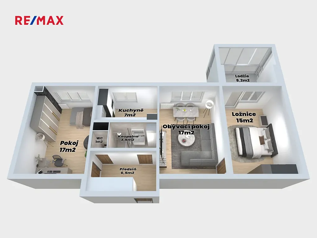 V prosinci 2025 dokončeno zvětšení a zasklení lodžie, která má nyní nadstandardní výměru 8,20m2, a tedy možnost výrazného rozšíření užitné plochy bytu a využití jako zimní zahrady anebo terasy navazující na ložnici.
