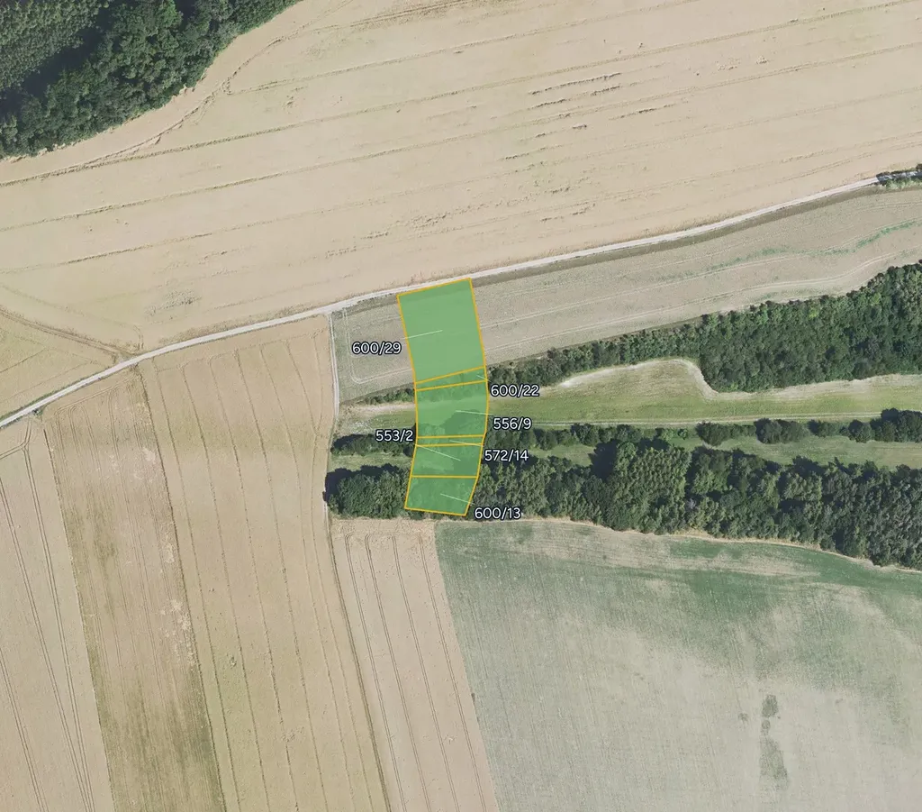 - parcely číslo 553/2, 556/9, 572/14, 600/13, 600/22, 600/29