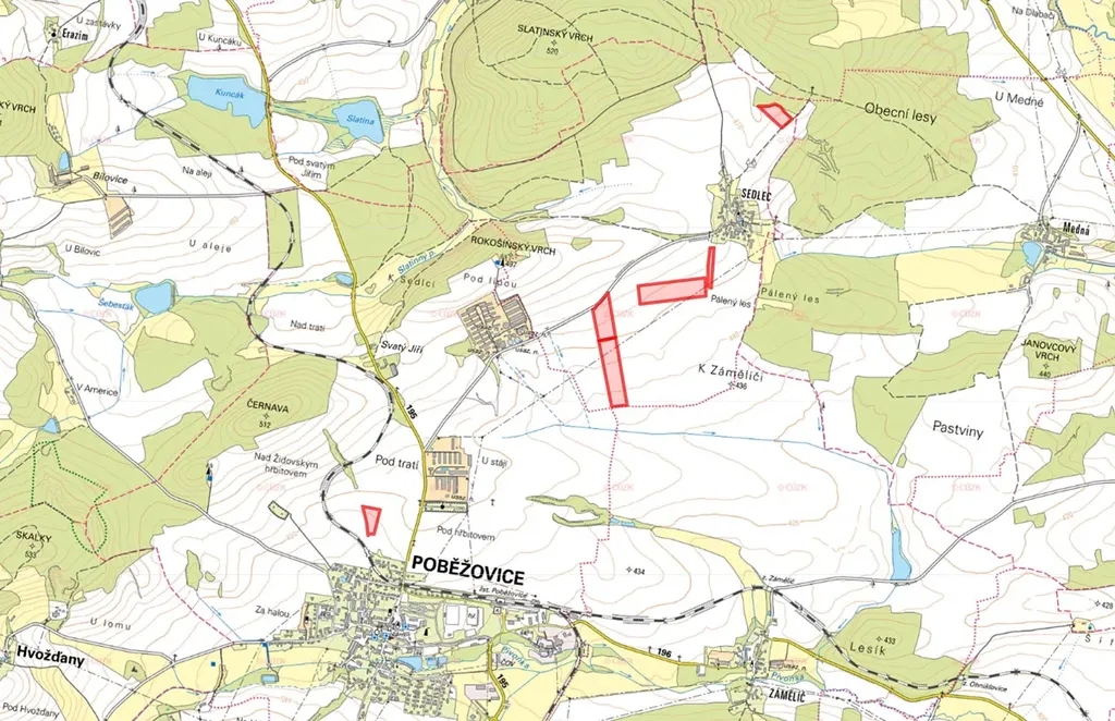 Všechny uvedené pozemky jsou vedeny jako orná půda nebo trvalý travní porost.
