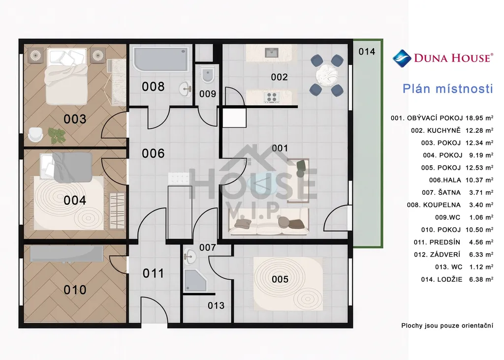 Srdcem bytu je velký obývací pokoj propojený s kuchyní, tvořící spolu příjemný a vzdušný prostor pro společné chvíle. Z obývací části vedou dveře do útulné lodžie, kde si můžete užít ranní kávu, odpolední slunce nebo klid po náročném dni.