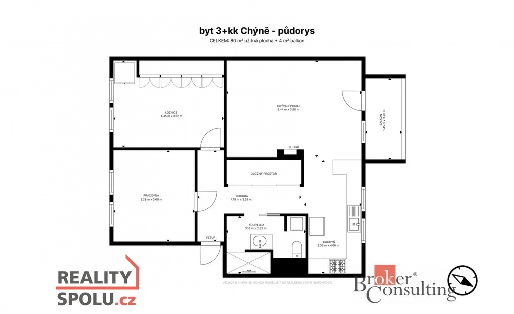 Prodej prostorného bytu 3+kk, 79 m², ul. Tichá, Chýně