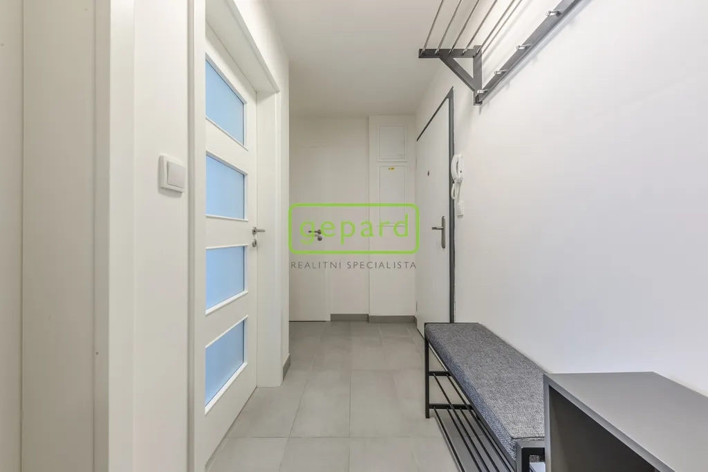 Interiér bytu je ve velmi pěkném stylu, a v prakticky novém stavu. Na podlahách je kvalitní vinyl, kuchyňská linka je osazena spotřebiči včetně varné desky, sporáku, pečicí trouby a mikrovlnné trouby.