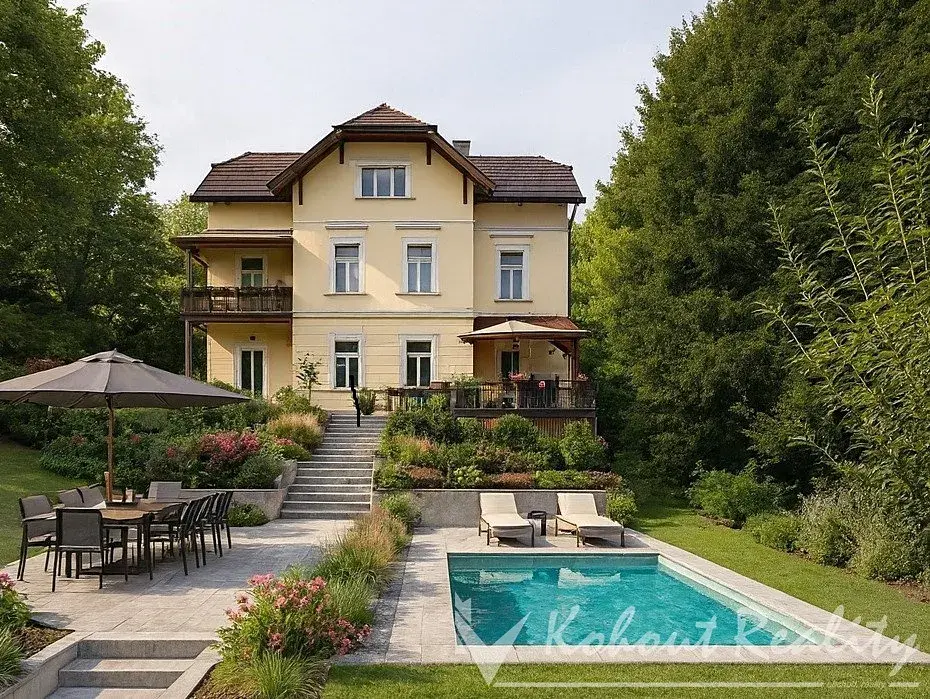 Secesní vila Baronka (1906) s výhledy, domem zahradníka a rozlehlou zahradou 2 778 m2