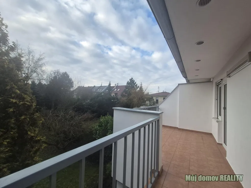 V patře jsou tři ložnice, každá s přístupem na balkon, dále menší pracovna a koupelna s WC a pračkou. Obytné místnosti jsou orientovány převážně na jih, díky čemuž je dům velmi světlý a nabízí příjemné výhledy do zeleně. Ulice je tichá, bez rušivého provozu.