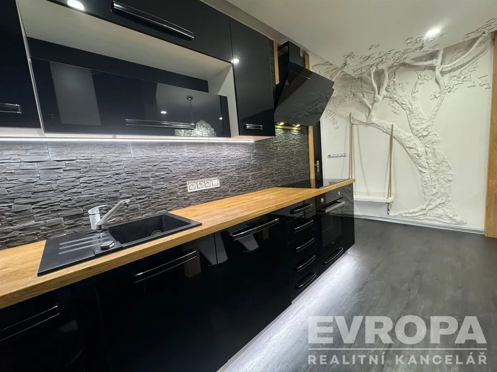 Byt je výjimečný svou kompletní výbavou – součástí prodeje je veškerý nábytek na míru, kvalitní spotřebiče a prvky, které výrazně zvyšují komfort bydlení.