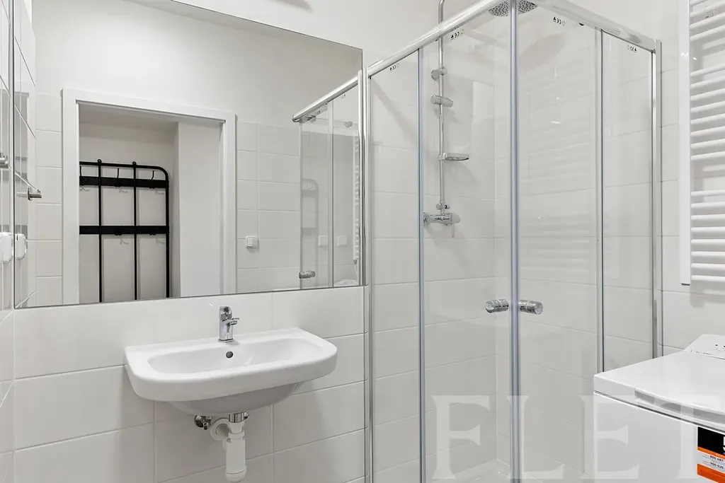 Jednotka je prakticky řešené 1+kk – vstupní chodba s místem na vestavnou skříň, koupelna se sprchovým koutem a WC a světlá obytná místnost s kuchyňským koutem, prostorem pro spaní i posezení. Díky neutrálním barvám a modernímu provedení působí vzdušně a je připravená k okamžitému užívání.