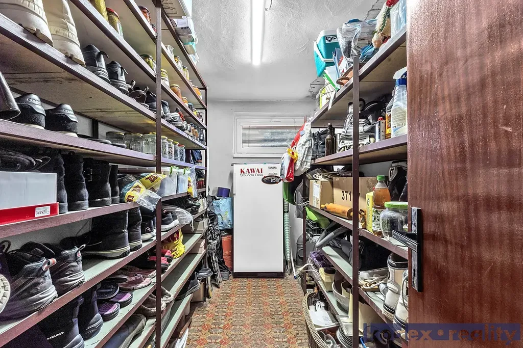 Horní patro – velká obytná místnost s jídelnou a kuchyní, 3x pokoj, koupelna, WC, z chodby vstup do podkroví.