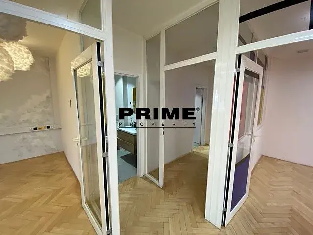 Specifikace prostor: stávající layout: 3 místnosti + kuchyňka a 2 x WC; klimatizace, otevíratelná okna, parkety a dlažba, optická vlákna, přístup na magnetické karty. V budově je centrální recepce, ostraha a 24 hodinová bezpečnostní služba.
