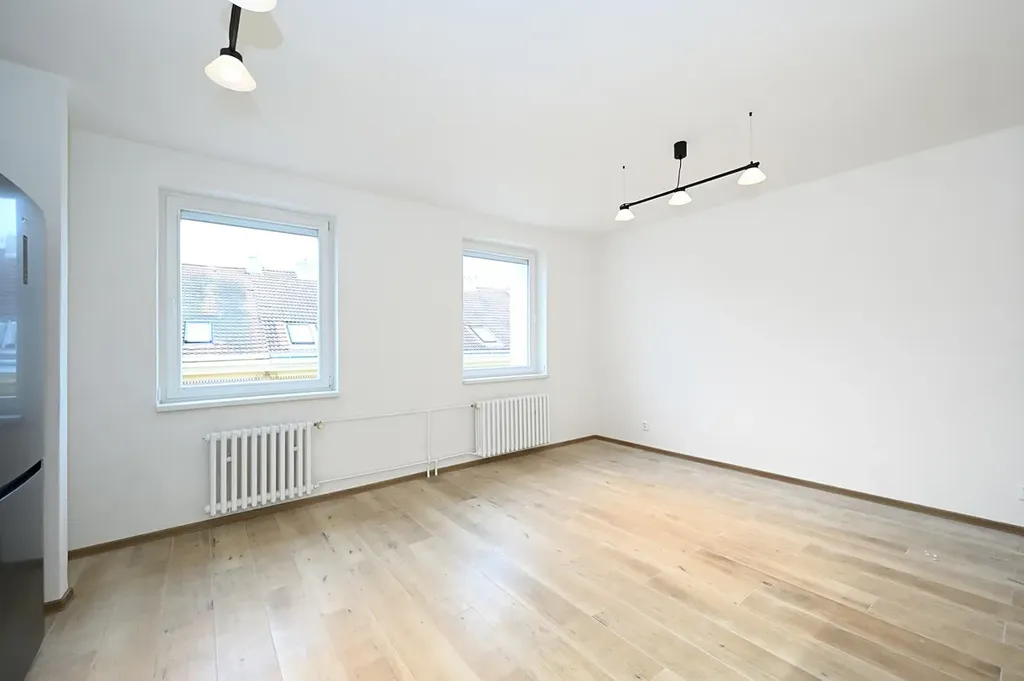 Zcela nová rekonstrukce bytu 5. NP v klidné ulici kousek od parku Petřín. Okna východním směrem, opatřena vnějšími elektrickými roletami.