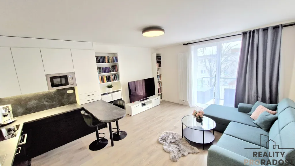 - částečně vybavený - v ložnici zůstávají skříně , kuchyňská linka s barovým pultem, myčka, mikrovlnná trouba, indukční varná deska a el. trouba. Bez ledničky