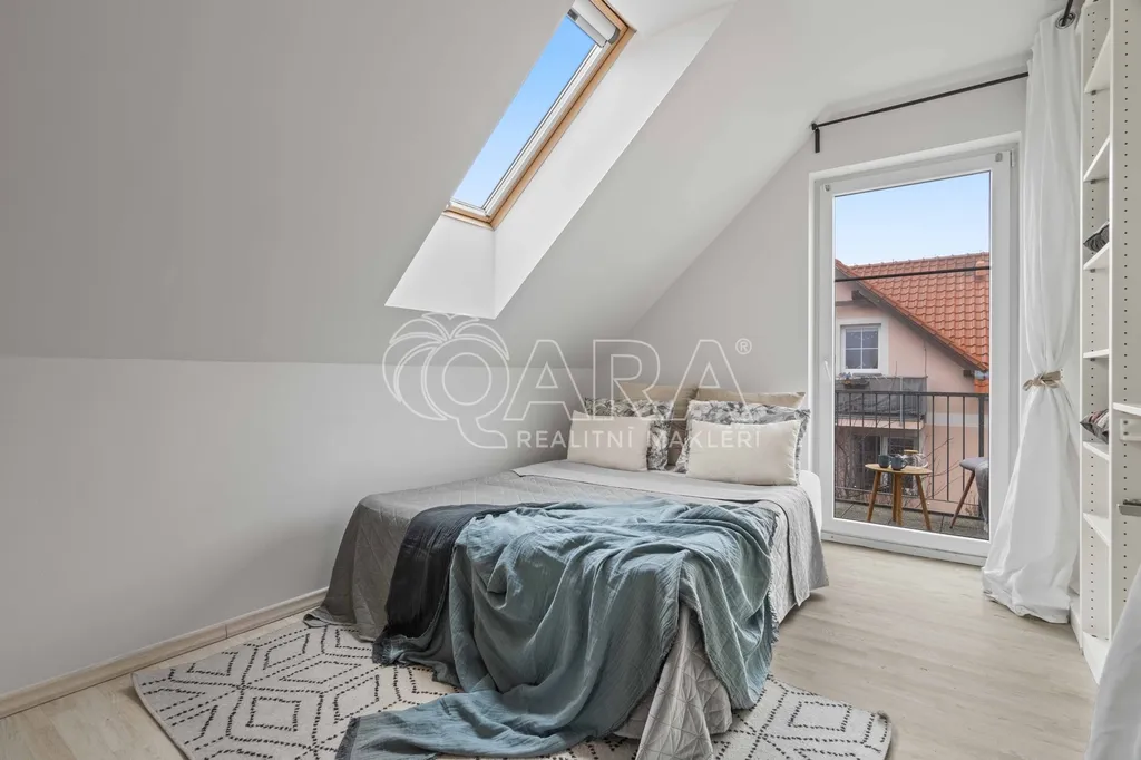 V Javorové ulici v Holubicích na Praze-západ čeká velmi příjemný dvoupodlažní byt o dispozici 3+KK s podlahovou plochou 83 m² a balkonem o velikosti 5 m².