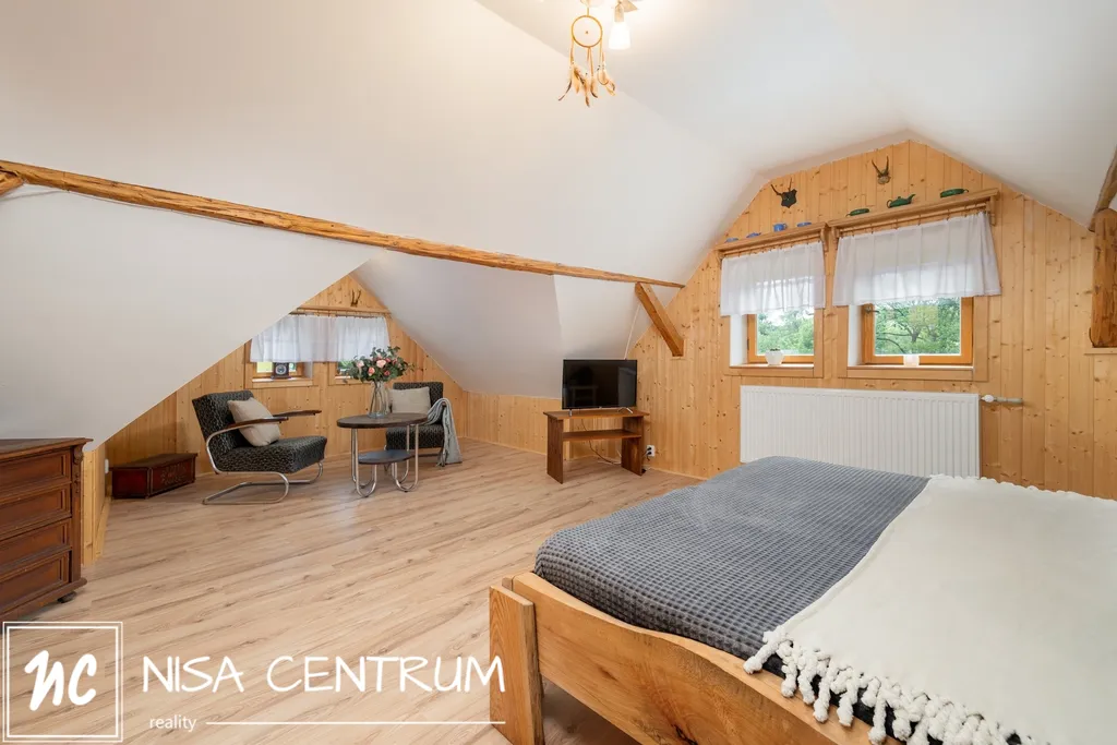 Na pozemku o rozloze 3 096 m² se nachází pergola s kůlnou, koupací jezírko, sauna, altán, terasovitá zahrada a část vlastního lesa. Tato nemovitost nabízí ideální kombinaci komfortního bydlení a relaxace v přírodním prostředí. Díky své poloze je vhodná jak pro trvalé bydlení, tak pro rekreační účely.