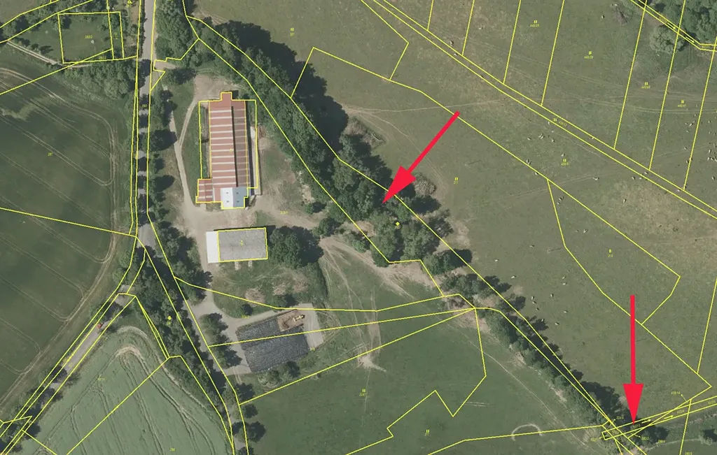 Prodáme 50% podíl na pozemku, louka s potokem v k.ú. Miletice u Dlažova, parc.č. 310 a 622/3, na hranici zástavby.