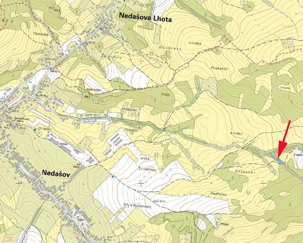 Prodáme pozemek, louku s potůčkem a stromy (možno se souhlasem spoluvlastníků pokácet) v k.ú. Nedašov, parc.č. 2339/2. Prodává se pouze náš podíl 1/4 (=25%) na celkové výměře 2528m2. K pozemku vede obecní cesta.