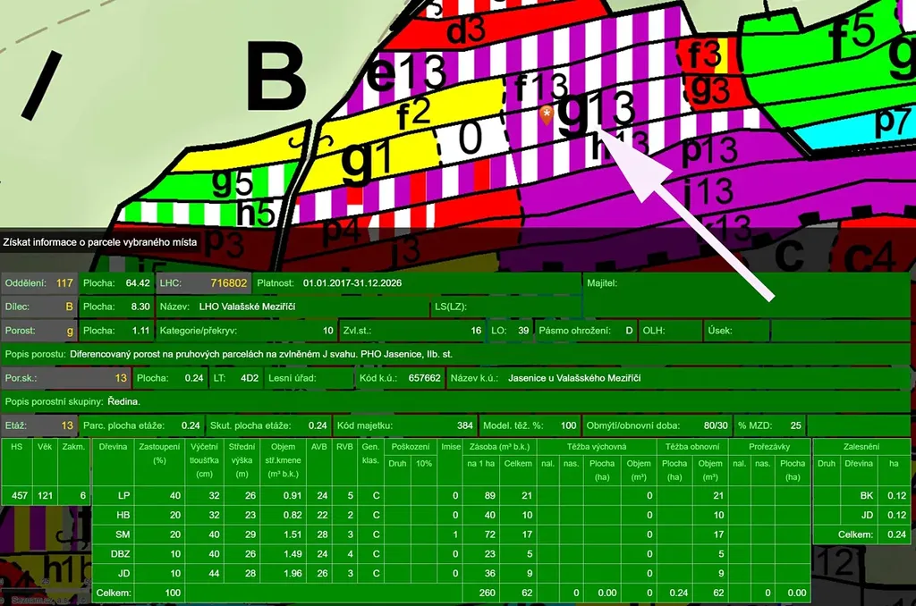 - lípa, habr, smrk, dub, jedle 123 let, 62m3