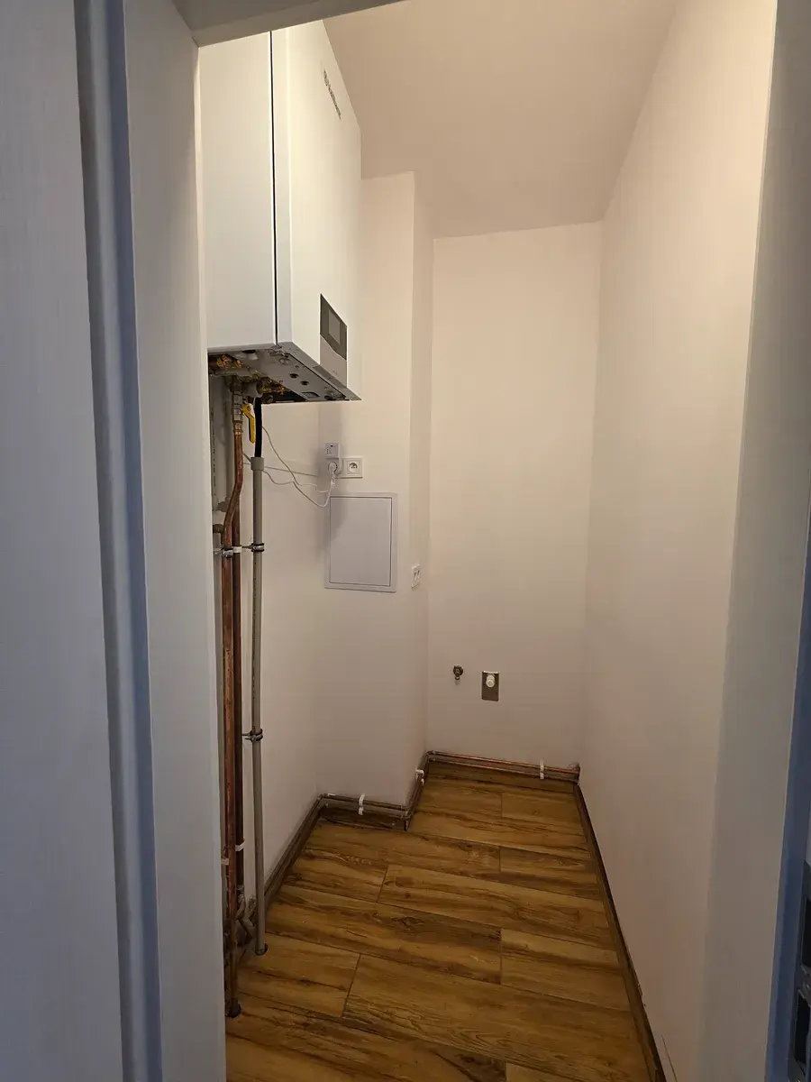 Tato bytová jednotka prošla v posledních měsících tohoto roku nádhernou, náročnou celkovou rekonstrukcí. Touto rekonstrukcí byla provedena výměna el. rozvodů, rozvodů vody a odpadů, byla vybudována zcela nová koupelna se sprchovým koutem a vanou, kuchyňská linka včetně vestavěných el. spotřebičů- lednička, mraznička, myčka nádobí, elektrická trouba a elektrická varná deska. K velkým přednostem tohoto bytu patří bezesporu vlastní plynové vytápění, které je zajištěno novým úsporným plynovým kondenzačním kotlem, který je napojen na nové ústřední vytápění v celém bytě a současně zajišťuje ohřev teplé vody. V této technické místnosti je rovněž vybudován přívod a odpad vody pro umístění pračky a sušičky. Dále v celém bytě byly nainstalovány sádrokartonové podhledy včetně zabudovaného osvětlení a nové podlahy.