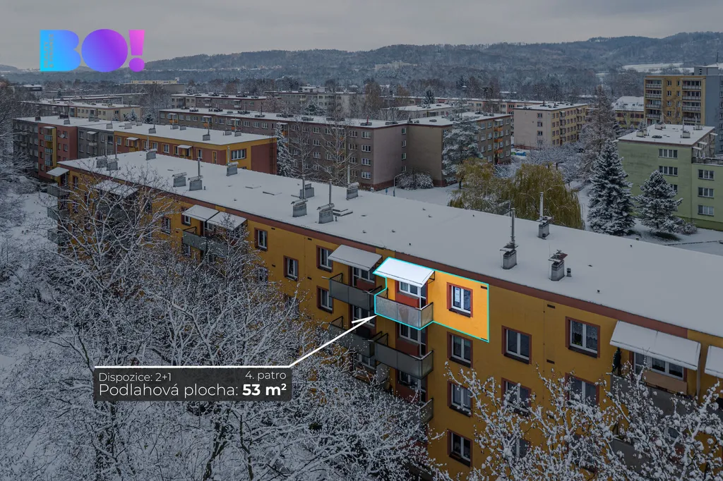 Byt se nachází ve 4. patře bez výtahu a disponuje lodžií orientovanou do zeleně, která podtrhuje příjemný charakter bydlení.
