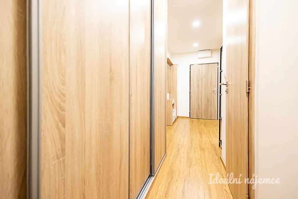 Byt se nabízí volný k zařízení dle vlastních představ. Kuchyně disponuje lednicí s mrazákem, myčkou, kombinovaným sporákem a digestoří. Obývací pokoj je nezařízený, stejně jako obě ložnice. V koupelně je vana, umyvadlo, zrcadlo a koupelnová skříňka. Toaleta je umístěna samostatně. V předsíni jsou vestavěné skříně.