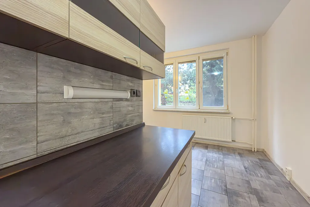 Byt je ve velmi dobrém a čistém stavu, bez zařízení a nábytku, připravený k okamžitému nastěhování. Dispozice zahrnuje kuchyň, dva neprůchozí pokoje, koupelnu s toaletou a prostornou předsíň.