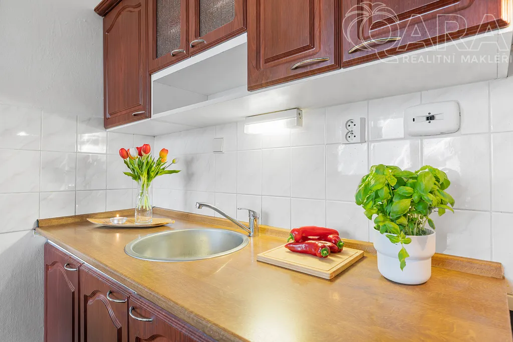Dům je zateplený, se slušnými sousedy a pečlivě udržovanými společnými prostory.