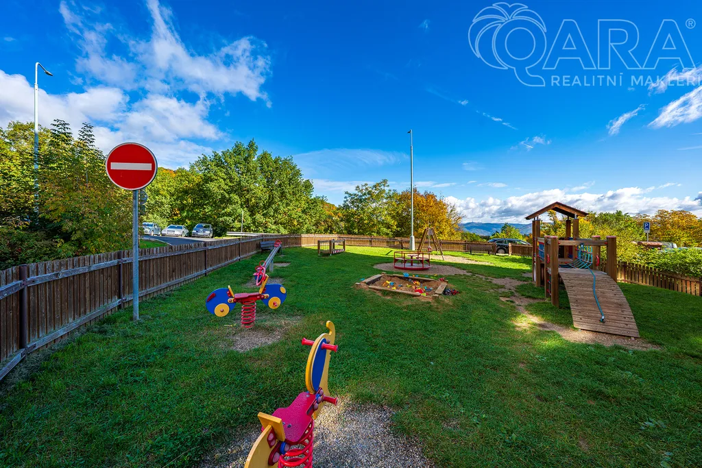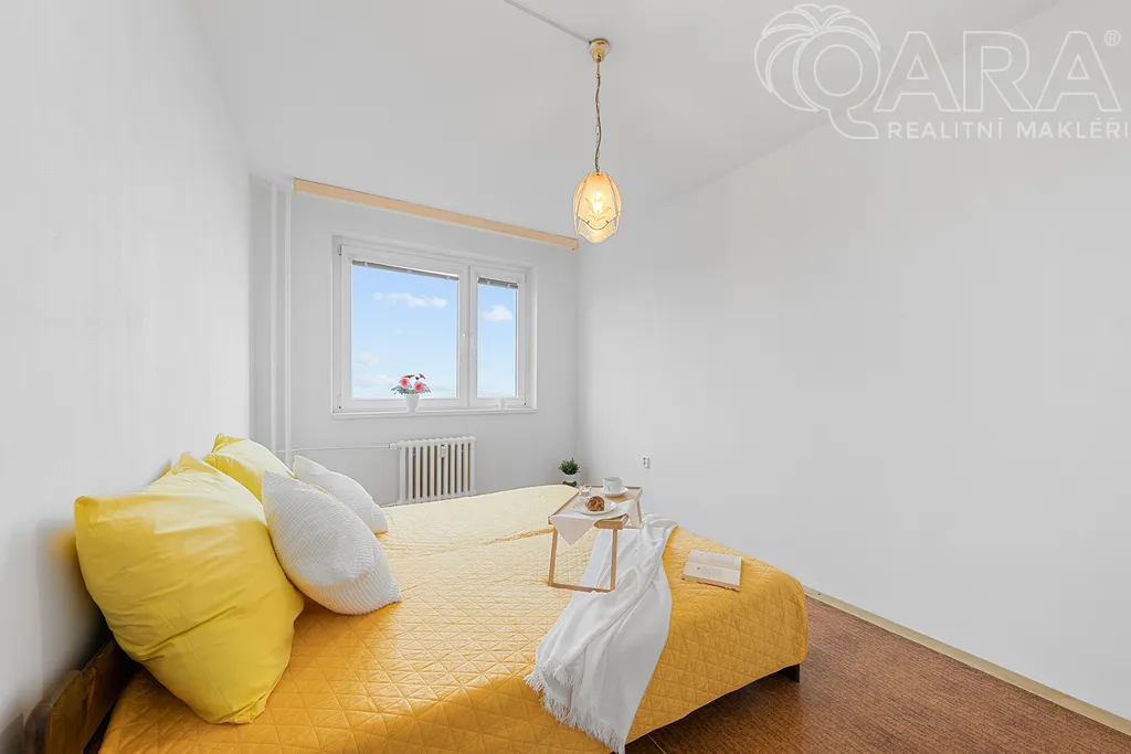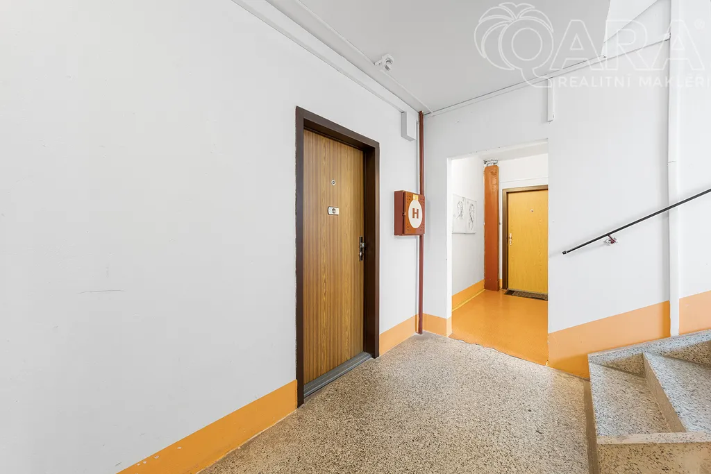 Byt se nachází ve 2. patře udržovaného panelového domu s výtahem a z obou hlavních místností nabízí ničím nerušený výhled do zeleného údolí, který vám zajistí klid a soukromí.