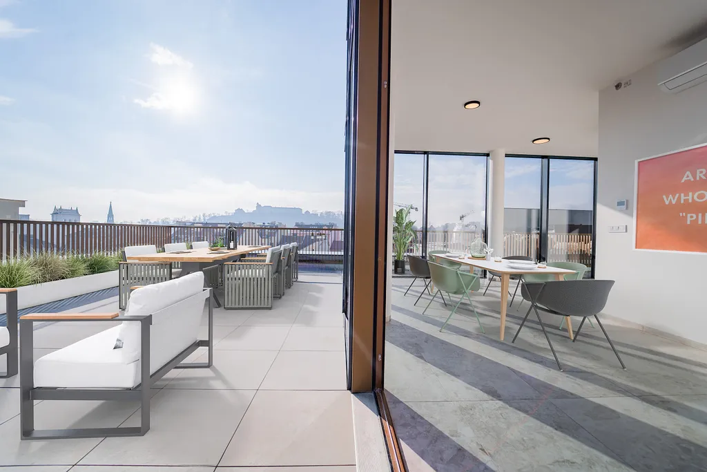 o Prostorná terasa s exkluzivním výhledem na hrad Špilberk a sklepní kóje