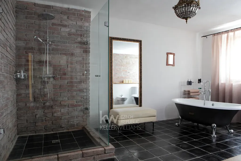Na prodej nabízíme výjimečný venkovský statek nedaleko Prahy, který představuje jedinečné spojení původní historické atmosféry a moderního designu. Usedlost prošla kompletní a mimořádně citlivou rekonstrukcí vedenou renomovanou interiérovou designérkou Martinou Schultes, která při návrhu interiéru pracovala s kombinací přírodních materiálů, betonových stěrek, černé žuly a zakázkových prvků vytvářených na míru. Díky tomu vznikl harmonický celek, v němž se moderní estetika prolíná s autentickými prvky tradiční architektury.