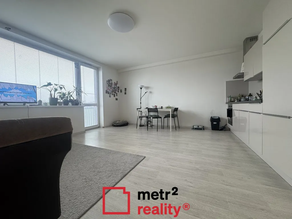 Dispozice bytu zahrnuje vstupní chodbu s vestavěnými skříněmi, prostorný obývací pokoj s kuchyňským koutem vybaveným moderní kuchyňskou linkou a vestavěnými spotřebiči, dále koupelnu se sprchovým koutem a toaletou.