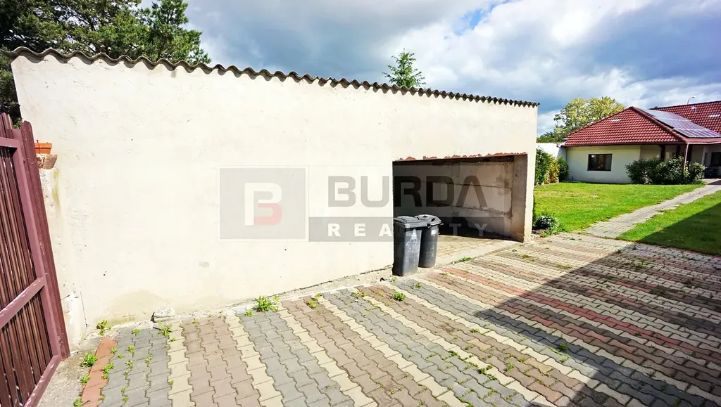 Garáž a přístavba garáže (dílna) je z plných cihel, na betonové desce, zastřešena na dř. trámcích s azbesto-cementovou vlnovkou, s elektřinou, celkem pro 3 auta.