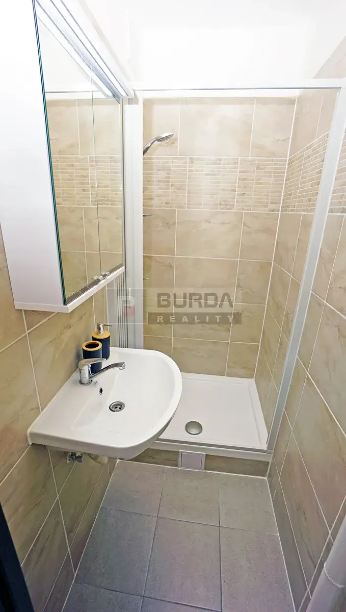 Koupelna a WC jsou po rekonstrukci. V koupelně je nový sprchový kout, umyvadlo a skříňka se zrcadlem a led bodovkou. Koupelnou prochází stoupačka vytápění, která koupelnu krásně vyhřeje.