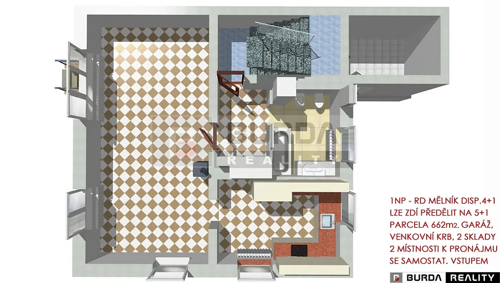 Exkluzivně Vám nabízíme k prodeji rodinný dům 4+1 se zahradou, s částečně podsklepenou garáží, s venkovním přístřeškem s krbem a se skladem nářadí s přilehlým dřevníkem v klidné části města Mělník.